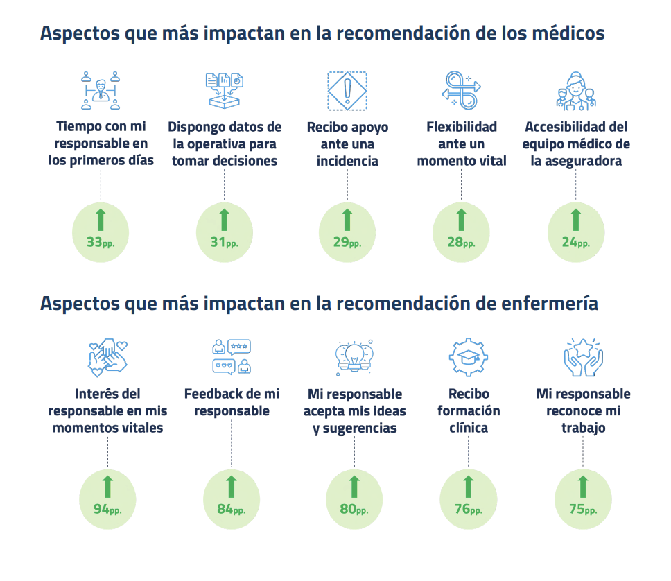 Siendo así, estos serían los "aspectos que más impactan en la recomendación de los médicos".